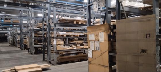 Потолки 7.5 метров. На складе установлены стеллажи.