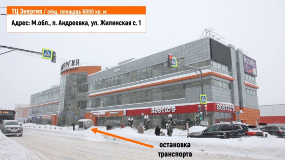 Собственник предлагает к продаже трёхэтажный действующий торговый центр с общей площадью 6058 м^2. Современный торговый центр Энергия открыл свои двери в 2015 году, объект практически полностью заполнен арендаторами, расположен в Андреевке на первой линии на центральной улице, у входа есть автобусная остановка, в 100 метрах от тц находится гипермаркет Ашан. Удачная локация обеспечивает хорошую проходимость. Комплекс имеет удобный подъезд для разгрузки и парковки автотранспорта. Здание оборудовано современной инженерией: есть лифт, 4 эскалатора, действуют системы приточно-вытяжной вентиляции кондиционирования, система сигнализации и пожаротушения. Якорные арендаторы: familia, rostic`s, sergio pizza. Месячный арендный поток по всем арендаторам составляет 48 миллиона рублей в год