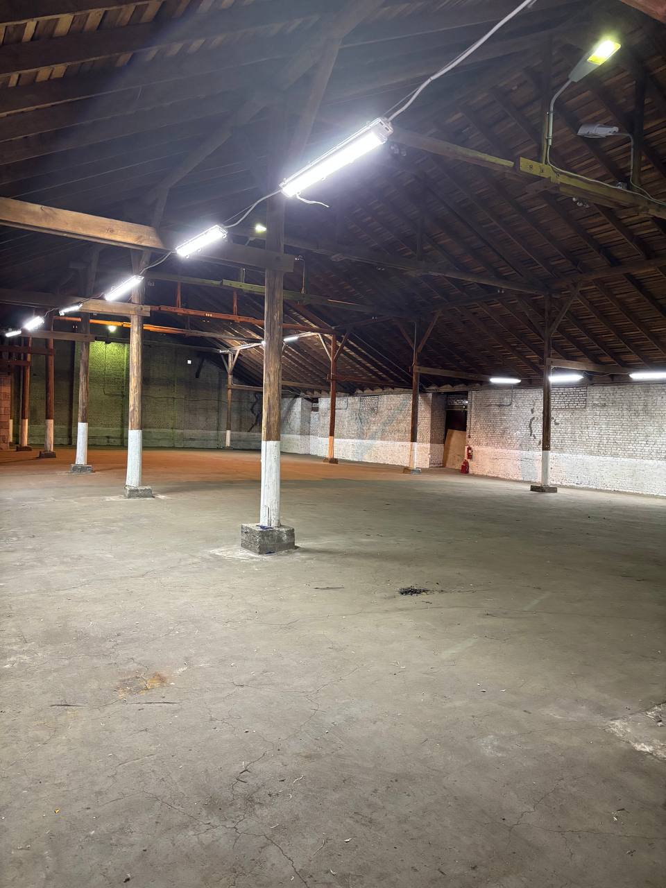 Склады утеплённые, стены кирпичные, высота 5-6м, пол асфальт.