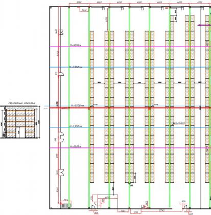 Площади оборудованы стеллажами для адресного (3 этажа) и паллетного хранения.