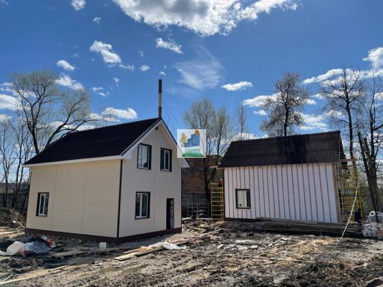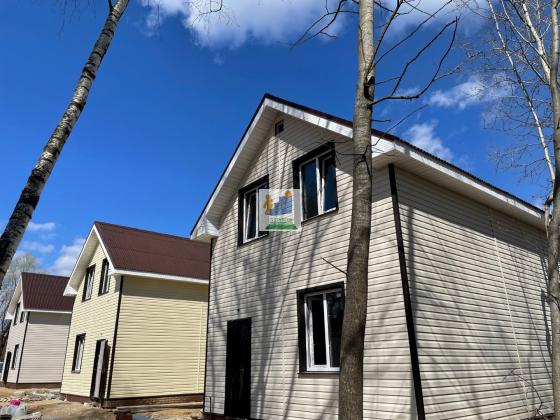 Дом из газоблока в районе ул. РАДУЖНАЯ д. Оболдино. Сдача - лето 2022 года, но уже сейчас можно забронировать понравившийся вариант и внести свои предложения по выбору материалов и незначительному изменению планировочного решения. Наши дома полностью готовы для жизни! Каждый дом построен по современному проекту. Не СНТ и не Коттеджный посёлок. Дом готов для ПМЖ, в нем можно прописаться! Фундамент армированная монолитная плита 30 см. Перекрытия: деревянные. Крыша: теплая, 200 мм утеплителя, ондулин. Первый этаж: На первом этаже дома размещены прихожая, санузел, комната жилая, кухня-гостиная и деревянная лестница с балясинами классической формы, которая ведет на второй этаж; Полы с отделкой из высокопрочного и износостойкого ламината 32 класса; Стены выведены в 0 под финишную отделку; Потолки натяжные, снежно-белого цвета с подготовленными выходами для светильников; Установлены розетки и выключатели; В каждой комнате установлены энергосберегающие конвекторы. Прихожая: Пол выполнен из плитки; Стены выведены в 0 под финишную отделку; Установлены выключатели; Установлен электросчетчик. Санузел: Полы выполнены из плитки с подогревом, регулятор температуры установлен на стене; Стены отделаны панелями ПВХ с пароизоляцией; Установлены все смесители, ванная, унитаз, бойлер на 100 литров; Второй этаж: На втором этаже расположены две просторные жилые комнаты и холл. Стены отделаны деревянной вагонкой в натуральном цвете; Потолок мансардный, со скосами, отделан натуральной деревянной вагонкой; Холл второго этажа отделан вагонкой в натуральном оттенке. Двери: Во все помещения установлены межкомнатные двери подходящего оттенка, с коробкой и наличниками. Установлены надежные ручки и петли. Входная дверь для улицы, имеет дополнительный контур теплоизоляции. Внешняя часть металл, а внутренняя отделка светлого оттенка. Два замка верх и них. Над входной дверью предусмотрено место для уличного светильника. Отопление: В доме предусмотрено электрическое отопление: установленные электроконвекторы. Мощность на участке около 12-15 кВт. Водоснабжение: Скважина с системой фильтрации, 15 м. Канализация: Септик на участке. Земельный участок: Площадь участка около 4,5 сотки и более. Без перепадов высот, ровный. Площади участка достаточно для теплицы/ беседки, которую можно пристроить прямо к дому/ навес на 2 машины/ плодовые деревья или зону барбекю.