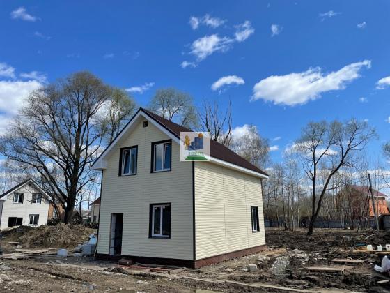 Дом из газоблока в районе ул. РАДУЖНАЯ д. Оболдино. Сдача - лето 2022 года, но уже сейчас можно забронировать понравившийся вариант и внести свои предложения по выбору материалов и незначительному изменению планировочного решения. Наши дома полностью готовы для жизни! Каждый дом построен по современному проекту. Не СНТ и не Коттеджный посёлок. Дом готов для ПМЖ, в нем можно прописаться! Фундамент армированная монолитная плита 30 см. Перекрытия: деревянные. Крыша: теплая, 200 мм утеплителя, ондулин. Первый этаж: На первом этаже дома размещены прихожая, санузел, комната жилая, кухня-гостиная и деревянная лестница с балясинами классической формы, которая ведет на второй этаж; Полы с отделкой из высокопрочного и износостойкого ламината 32 класса; Стены выведены в 0 под финишную отделку; Потолки натяжные, снежно-белого цвета с подготовленными выходами для светильников; Установлены розетки и выключатели; В каждой комнате установлены энергосберегающие конвекторы. Прихожая: Пол выполнен из плитки; Стены выведены в 0 под финишную отделку; Установлены выключатели; Установлен электросчетчик. Санузел: Полы выполнены из плитки с подогревом, регулятор температуры установлен на стене; Стены отделаны панелями ПВХ с пароизоляцией; Установлены все смесители, ванная, унитаз, бойлер на 100 литров; Второй этаж: На втором этаже расположены две просторные жилые комнаты и холл. Стены отделаны деревянной вагонкой в натуральном цвете; Потолок мансардный, со скосами, отделан натуральной деревянной вагонкой; Холл второго этажа отделан вагонкой в натуральном оттенке. Двери: Во все помещения установлены межкомнатные двери подходящего оттенка, с коробкой и наличниками. Установлены надежные ручки и петли. Входная дверь для улицы, имеет дополнительный контур теплоизоляции. Внешняя часть металл, а внутренняя отделка светлого оттенка. Два замка верх и них. Над входной дверью предусмотрено место для уличного светильника. Отопление: В доме предусмотрено электрическое отопление: установленные электроконвекторы. Мощность на участке около 12-15 кВт. Водоснабжение: Скважина с системой фильтрации, 15 м. Канализация: Септик на участке. Земельный участок: Площадь участка около 4,5 сотки и более. Без перепадов высот, ровный. Площади участка достаточно для теплицы/ беседки, которую можно пристроить прямо к дому/ навес на 2 машины/ плодовые деревья или зону барбекю.